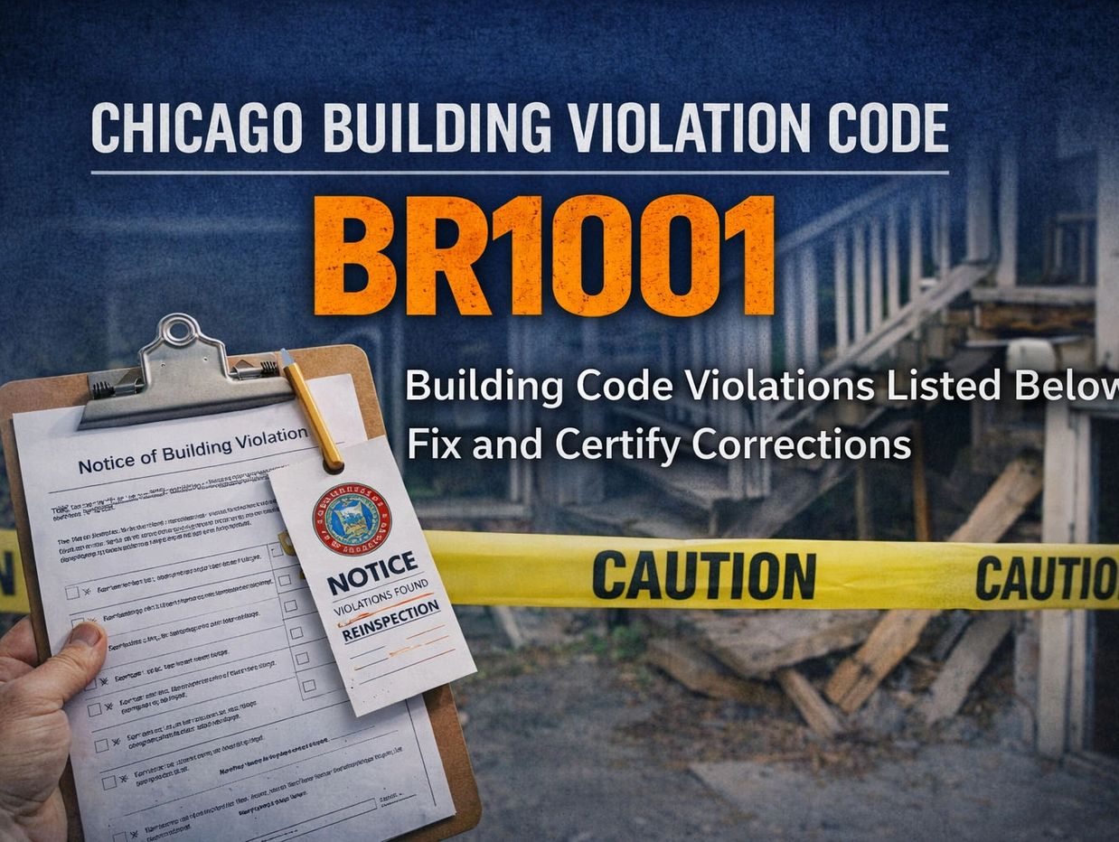 If you received a Chicago building violation labeled BR1001, it usually isn’t describing one specific broken item (like a stair, porch, or window). Instead, BR1001 is commonly used as a “cover” or “header” violation that introduces a list of specific code violations that must be corrected by a deadline.